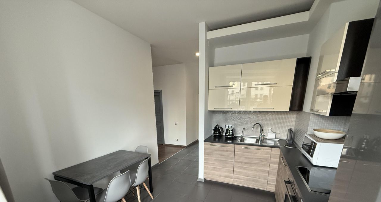 - Полная меблировка: вся необходимая мебель для комфортного проживания уже на месте. Гостиная: большой современный телевизор 55 дюймов, шкаф с бокалами для ваших праздников, тумба под тв и раскладной диван.
