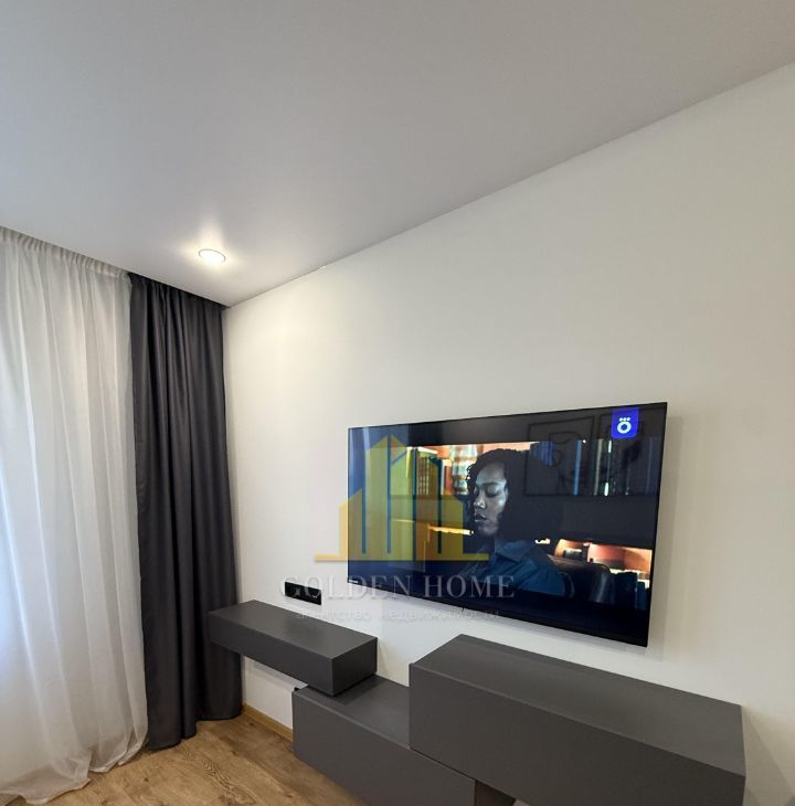 Удобный диван, большой смарт телевизор.