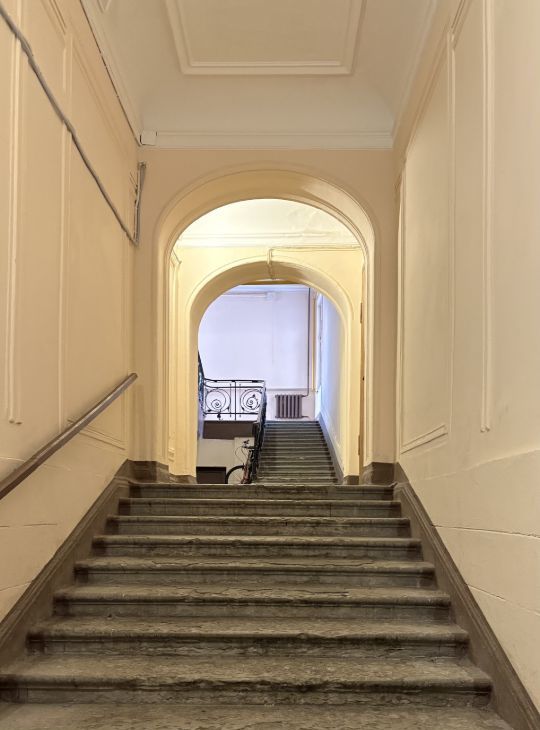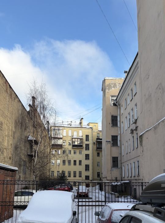 Продается уютная двухкомнатная квартира с изолированными комнатами на четвертом этаже кирпичного дома, построенного в 1813 году. Капитальный ремонт дома проводился в 1990 году с полной заменой коммуникаций и перекрытий. Высокие потолки 3 метра создают ощущение простора. Из окон открывается вид во двор, где расположена закрытая территория с открытой парковкой за шлагбаумом. Окно с кухни выходит на Коломенскую.