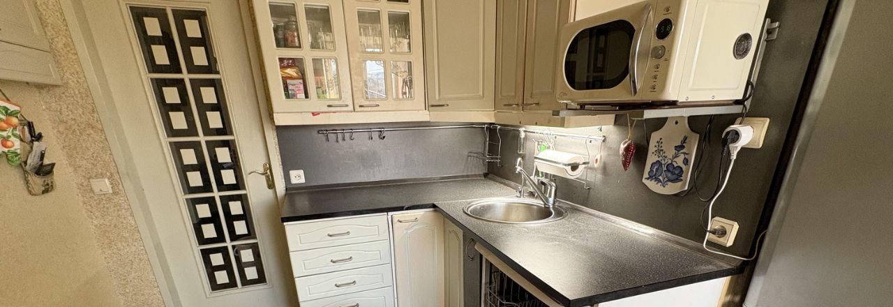 Кухня площадью 11 квадратных метров оборудована необходимой техникой, включая холодильник и посудомоечную машину. В квартире выполнен косметический ремонт, что позволяет сразу въехать и жить. В ванной комнате установлена современная сантехника и стиральная машина. Стоит счетчик воды.