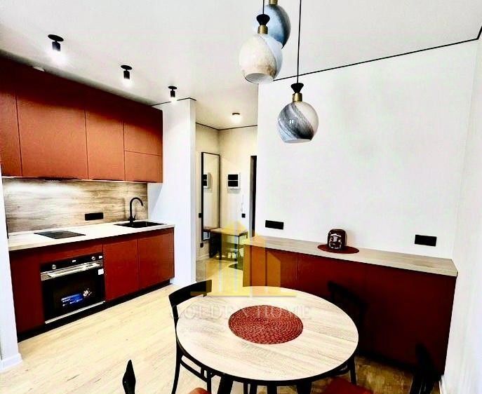 Мебель и техника: Полностью укомплектована для комфортного проживания. В наличии: стиральная и посудомоечная машины, индукционная плита, холодильник, духовой шкаф, телевизор.
