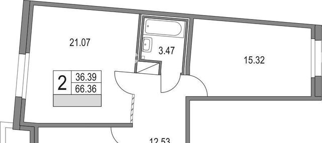 2-к кв. Санкт-Петербург Коломяжский просп., 13к3 (67.3 м²)