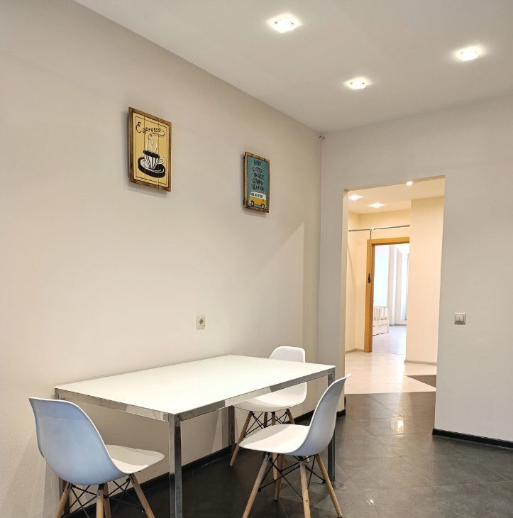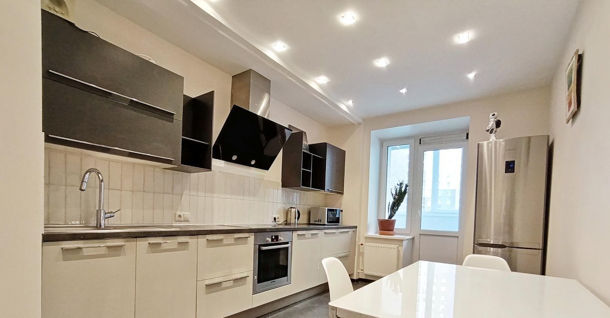 •Кухня,для комфортной жизни оснащена всей необходимой бытовой техникой и мебелью: варочная панель,духовой шкаф, вытяжка,посудомоечная машина, СВЧ,электрический чайник,холодильник,робот-пылесос,большой обеденный стол и стулья.