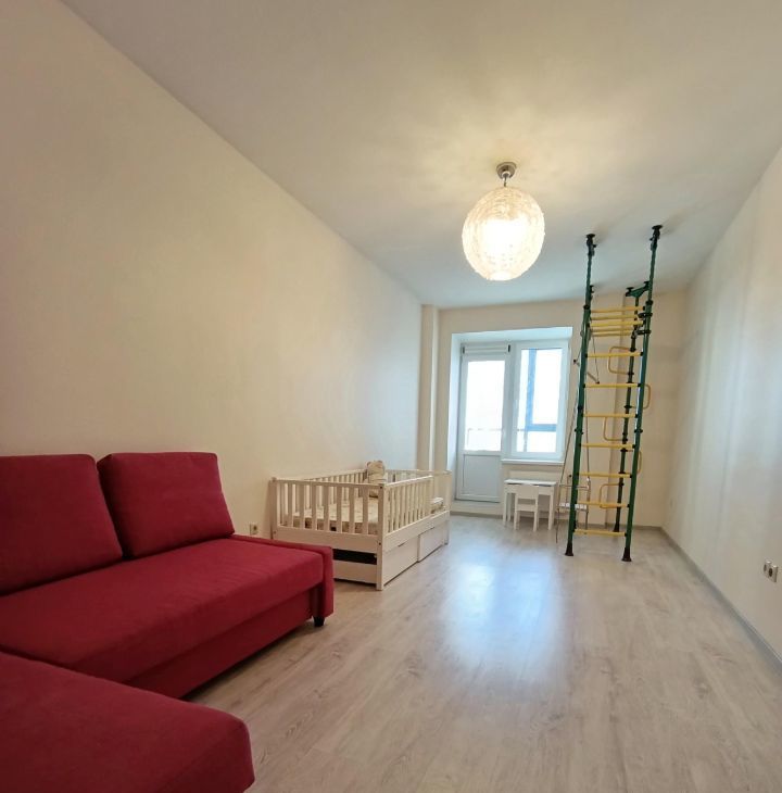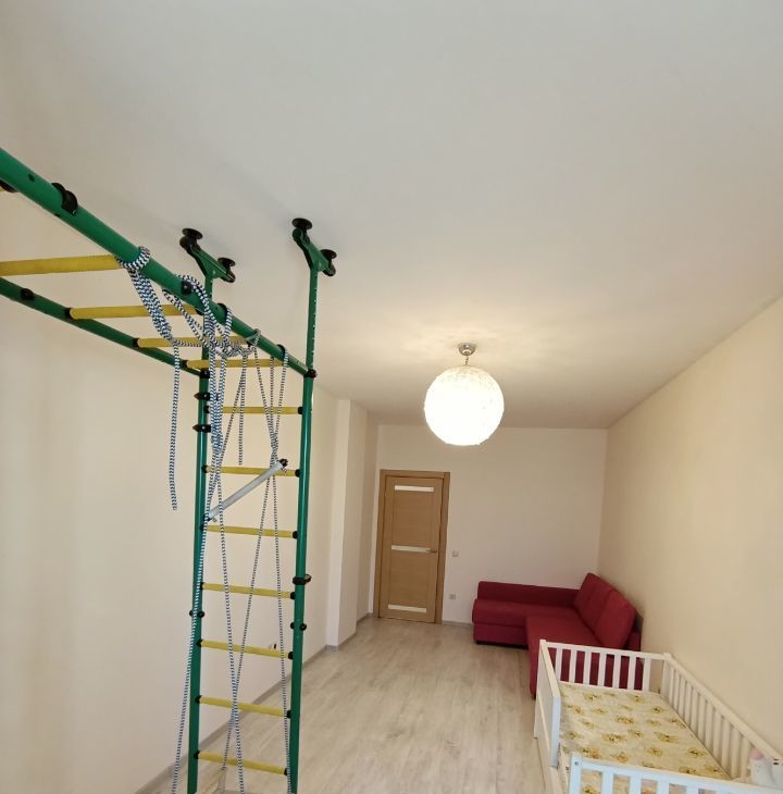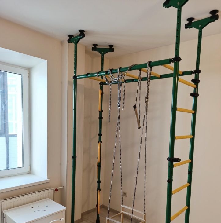 •Детская с угловым диваном,детской кроваткой и игровым комплексом(кольца,канат,качели).
