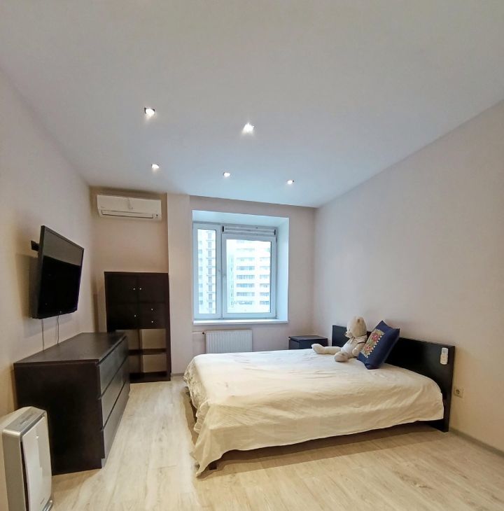 •Спальня с большой двуспальной кроватью,вместительным шкафом,комодом,кондиционером и телевизором.В комнате тихо,окна выходят во двор!