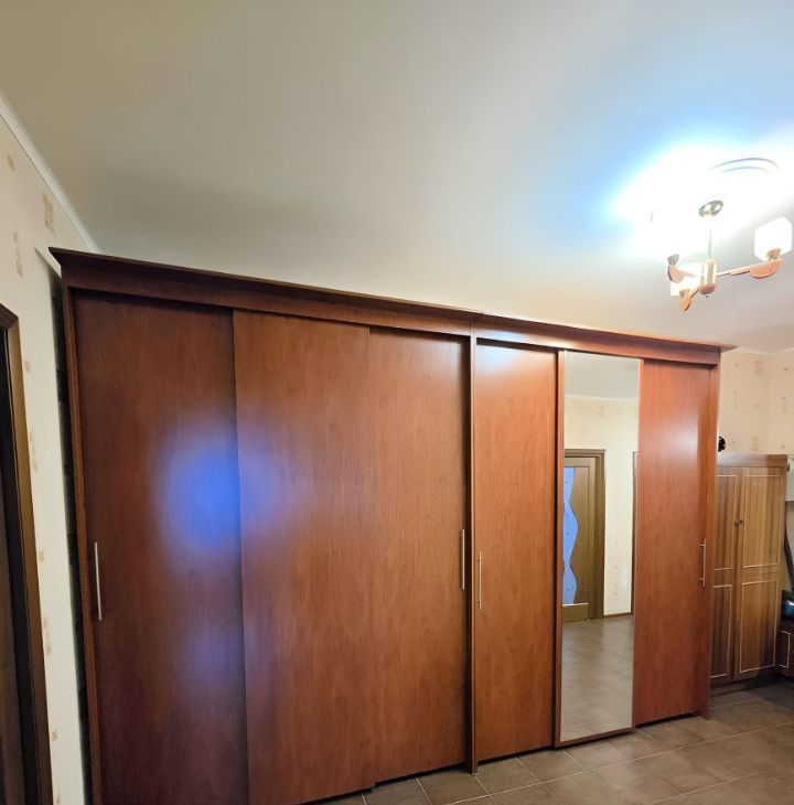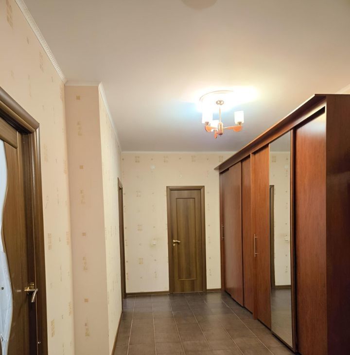 Просторная прихожая 16,5 м с вместительными шкафами-купе.