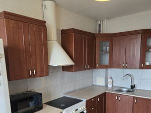-Кухня оснащена всей необходимой мебелью и техникой: холодильник, электрическая варочная панель, духовой шкаф, вытяжка, чайник, кофемашина.