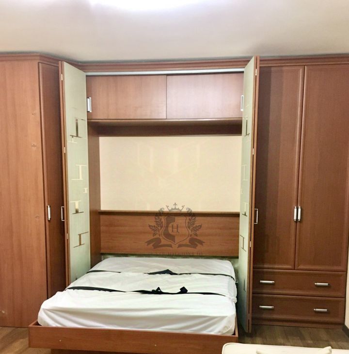 В гостиной 2 спальных места: раскладной диван а так же шкаф-трансформер с большой удобной кроватью.Во второй жилой комнате расположены: детская кровать с ортопедическим матрасом ,гардеробная и письменный стол. Кухня оборудована современной бытовой техникой : микроволновая печь, духовка, холодильник ,электрический чайник ,посудомоечная машина. Раздельный санузел. В ванной установлена стиральная машина.