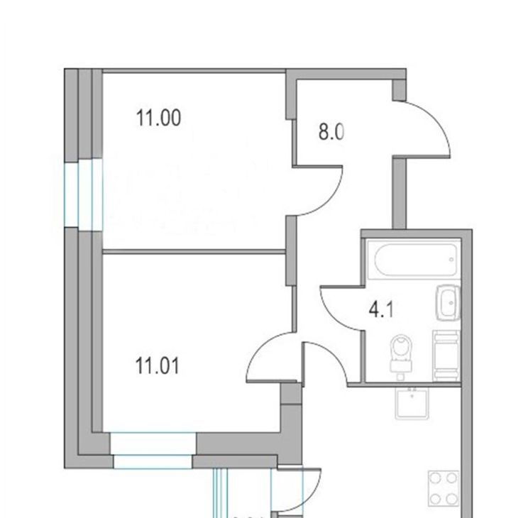 - две отдельные комнаты (по 11 м² каждая) — удобно для зонирования пространства;