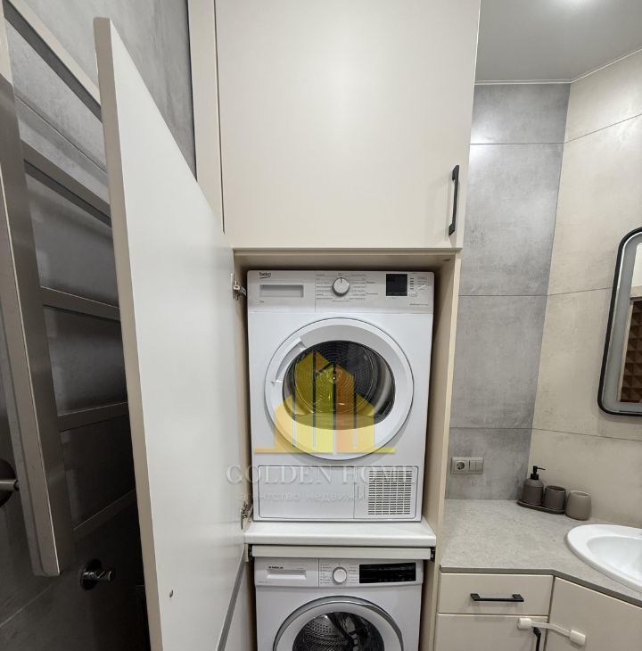 Есть водонагреватель, отсутствие летом горячей воды для вас не будет проблемой. Также есть сушильная машина.