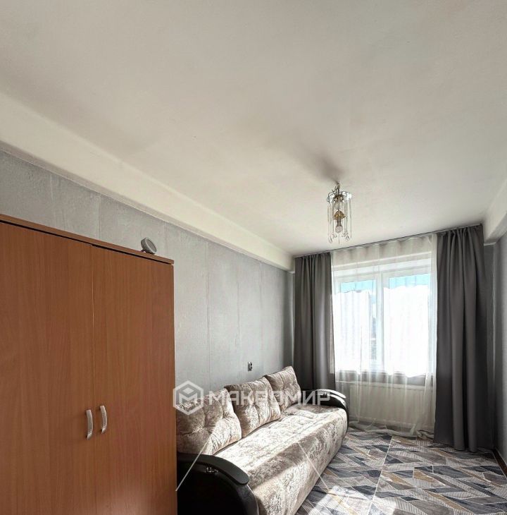 Квартира после частичного ремонта. В спальне новый диван, ковры.