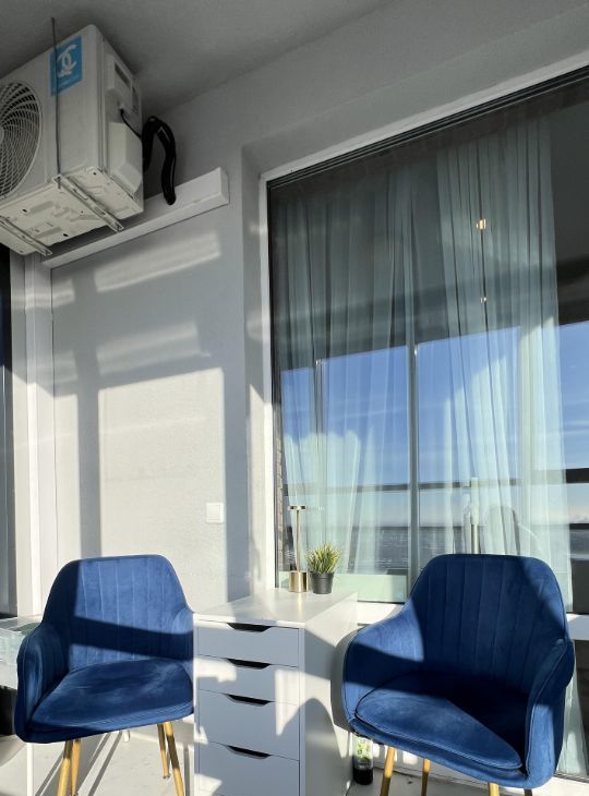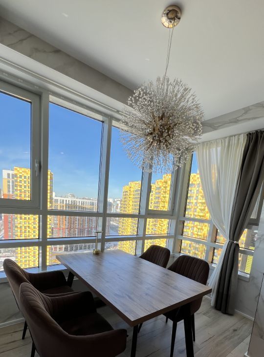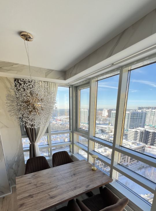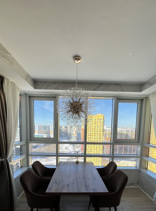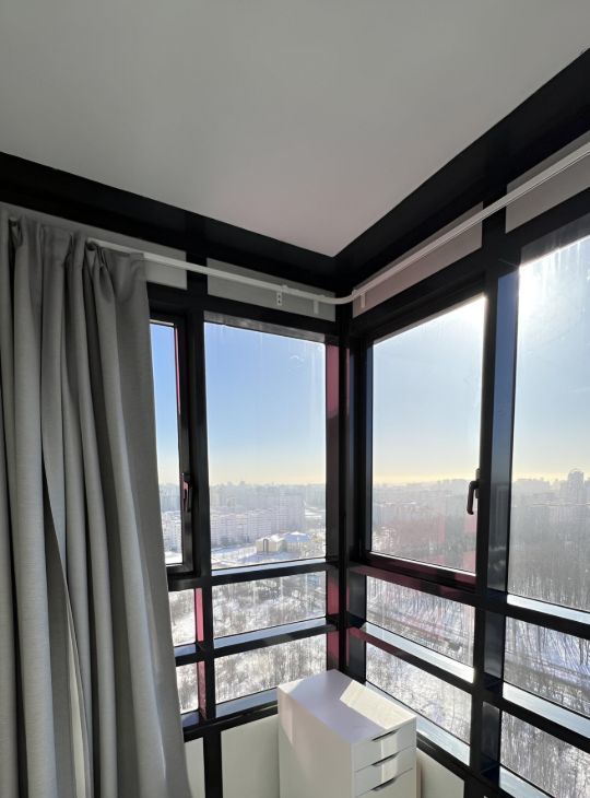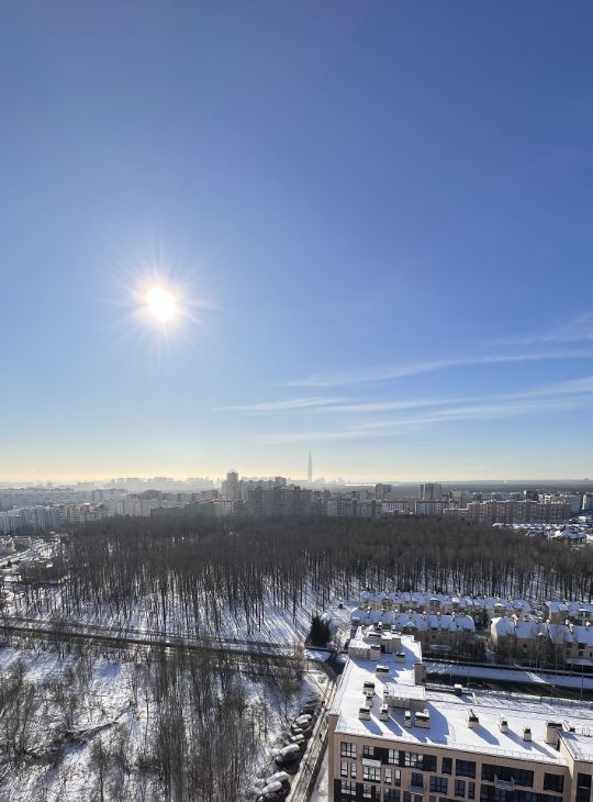 Шикарный эркер с подогреваемым полом . Огромный балкон с видом на башню Газпром и залив. Два раздельных санузла ( один с ванной )