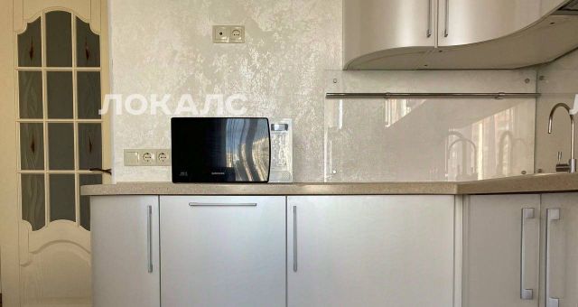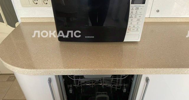 Кухня: встроенная кухонная мебель, столешница из искусственного камня, обеденная зона - стол, стулья, варочная поверхность, духовой шкаф, вытяжка, холодильник увеличенного объема, посудомоечная машина, стиральная машина, электрический чайник, СВЧ-печь.