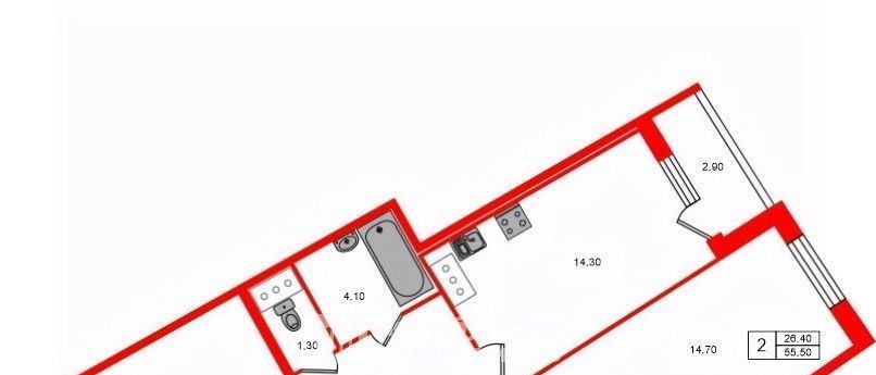 2-к кв. Санкт-Петербург Комендантский просп., 63 (55.5 м²)
