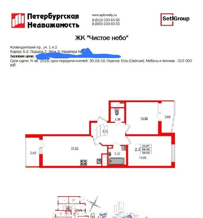 2-к кв. Санкт-Петербург Комендантский просп., 66к1 (54.0 м²)