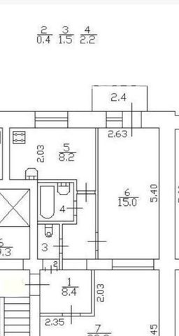 Квартира состоит из 2-х изолированных комнат 22,3 и 15 кв.м, кухня 8,2 кв.м, санузел раздельный. В маленькой комнате открытый балкон 2,4 кв.м. В коридоре -неглубокий, но вместительный шкаф-купе и кладовка. Центральное водоснабжение (не газовая колонка).