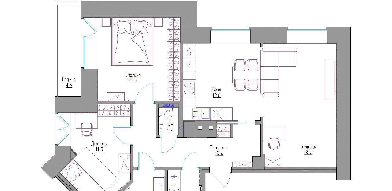Спальня с балконом - 14,5 кв. м. + 4,5 кв. м.