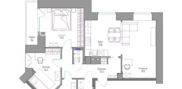 Спальня с балконом - 14,5 кв. м. + 4,5 кв. м.