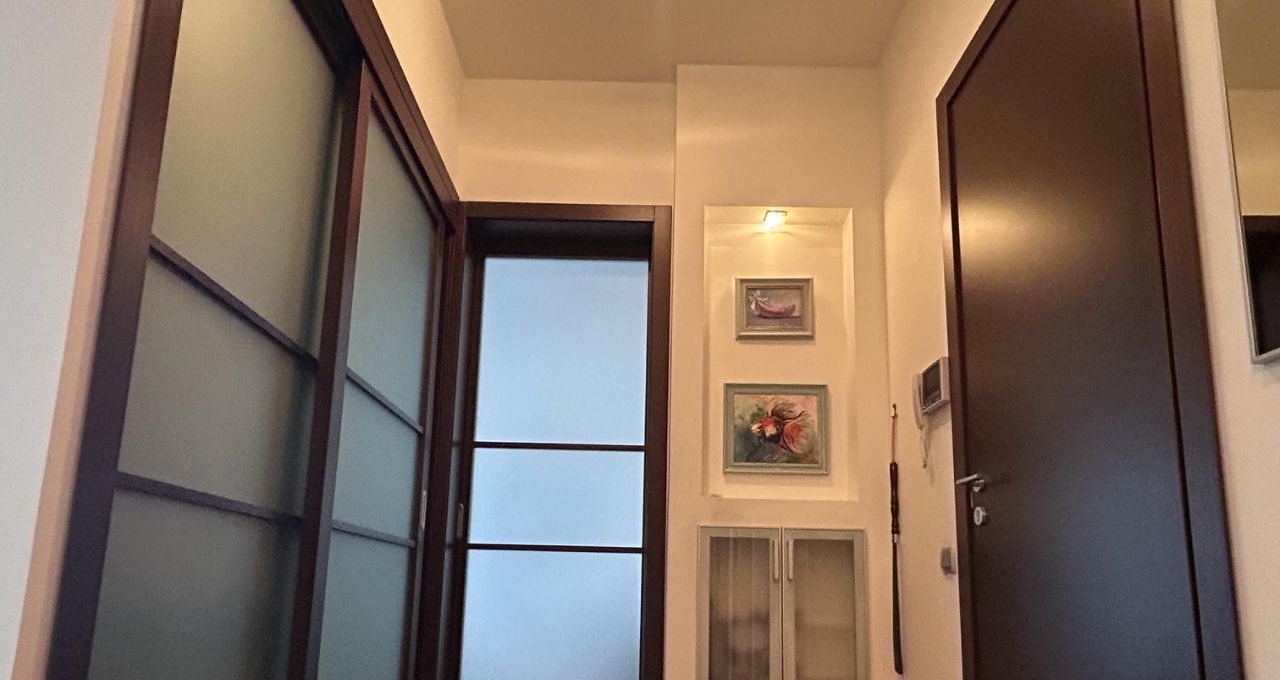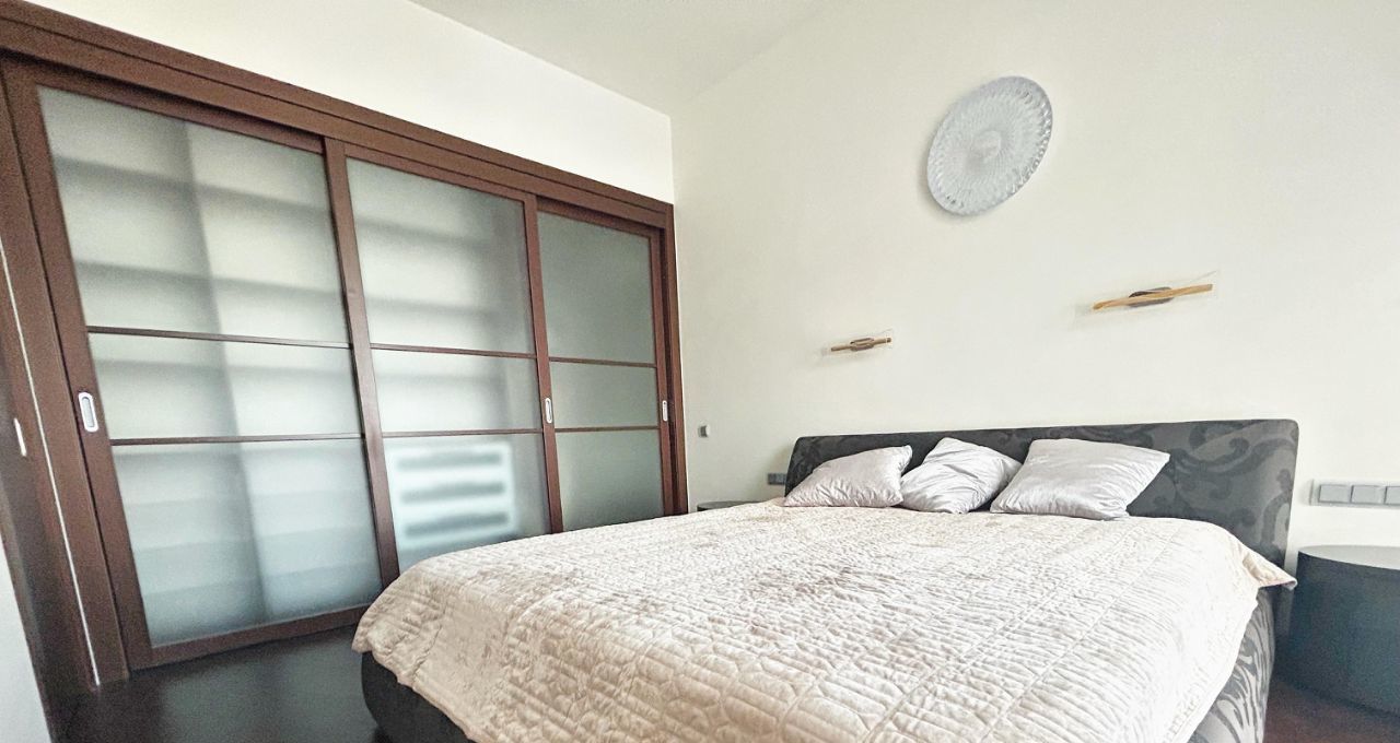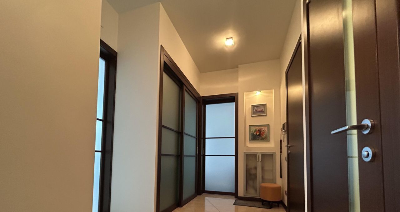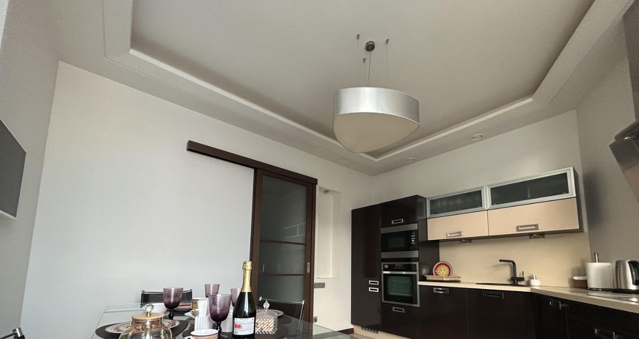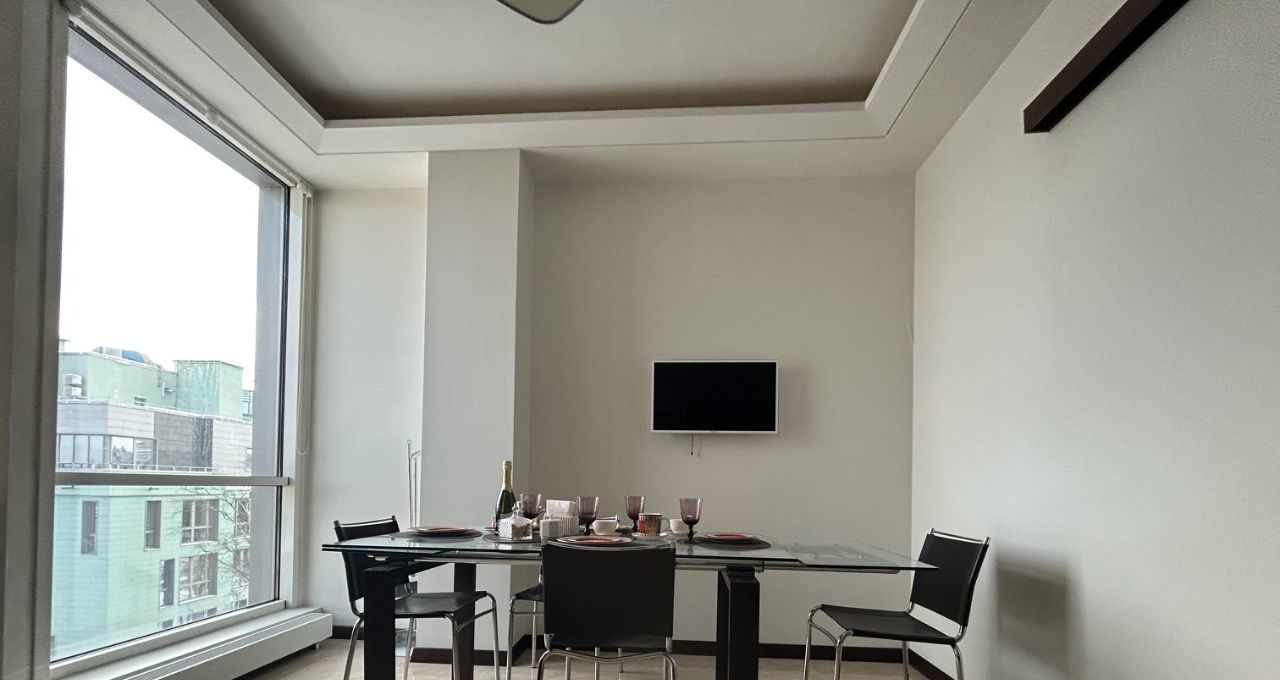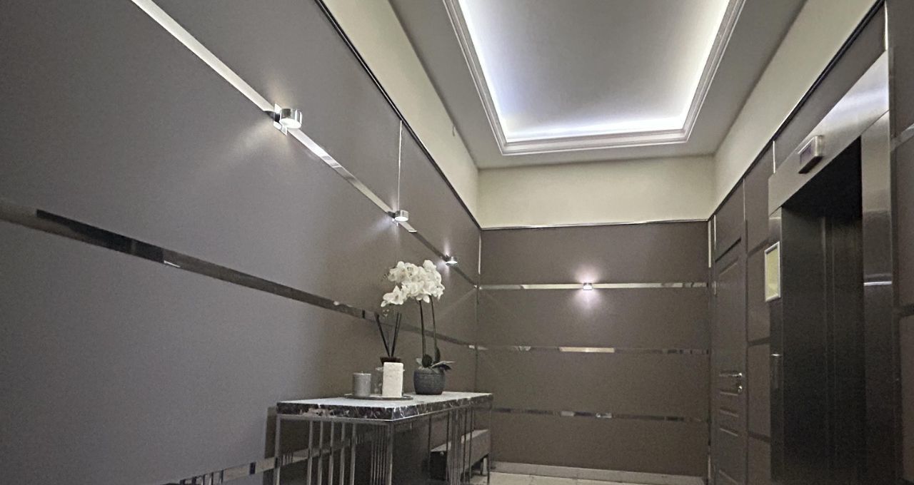 Уютная квартира с современным ремонтом, высокими потолками и панорамными окнами оборудована гардеробной и местами для хранения, установлено 2 кондиционера, теплые полы, три телевизора.