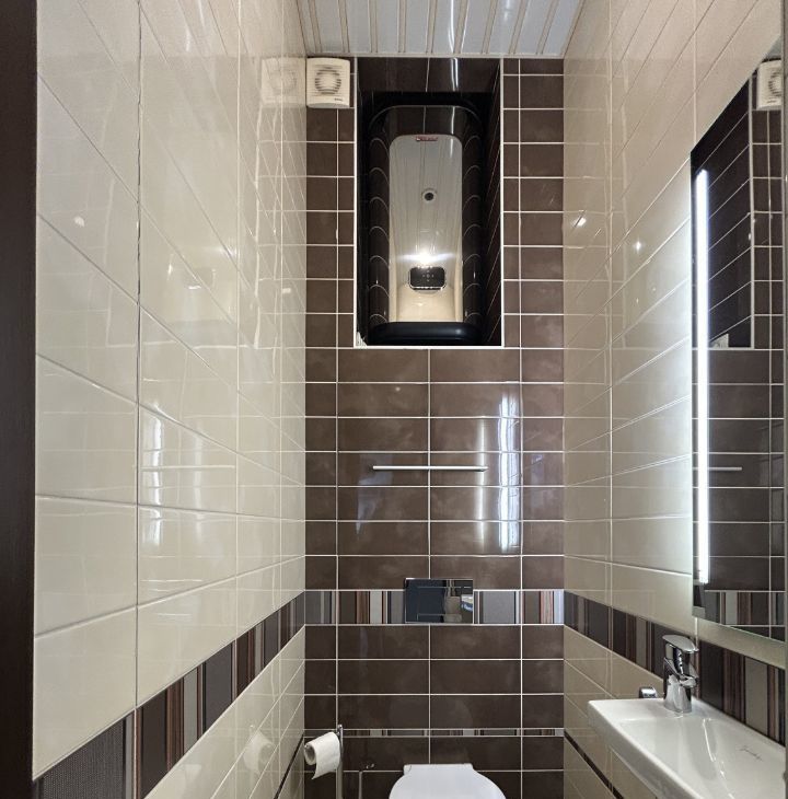 Раздельный санузел с гигиеническим душем и большим бойлером.