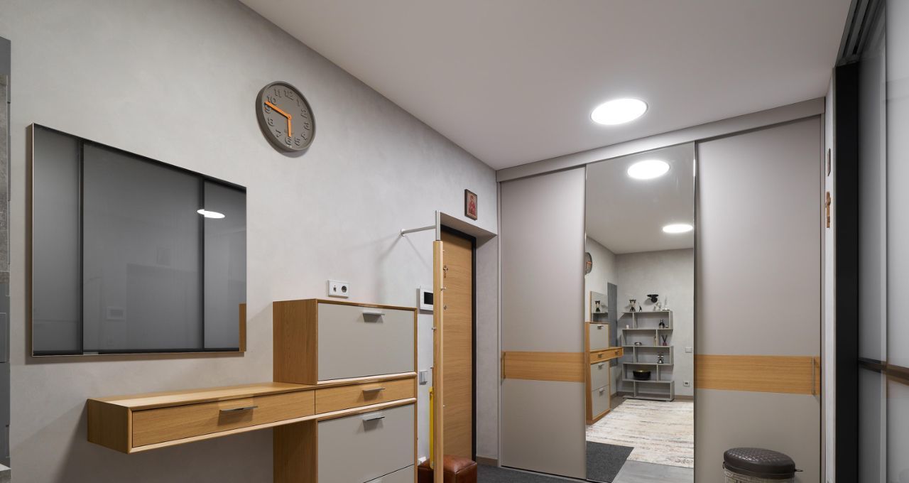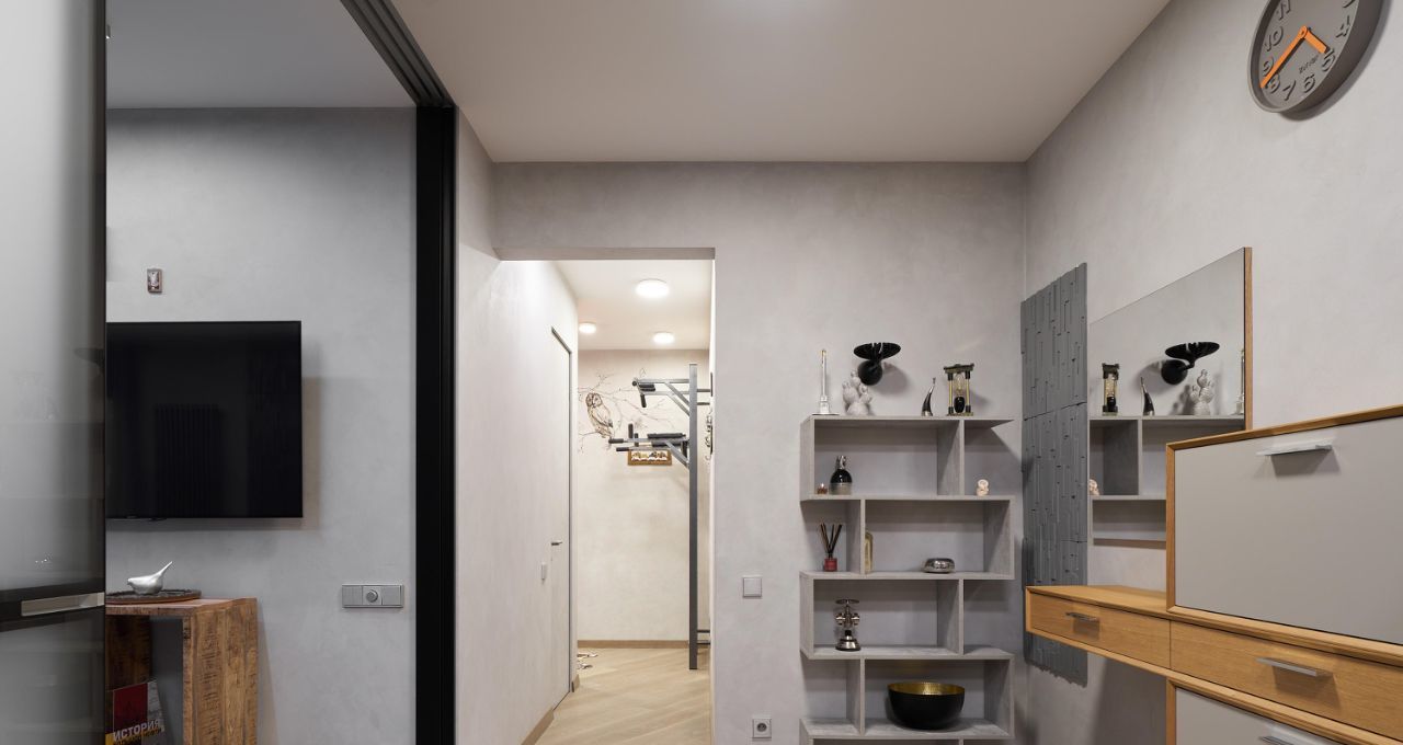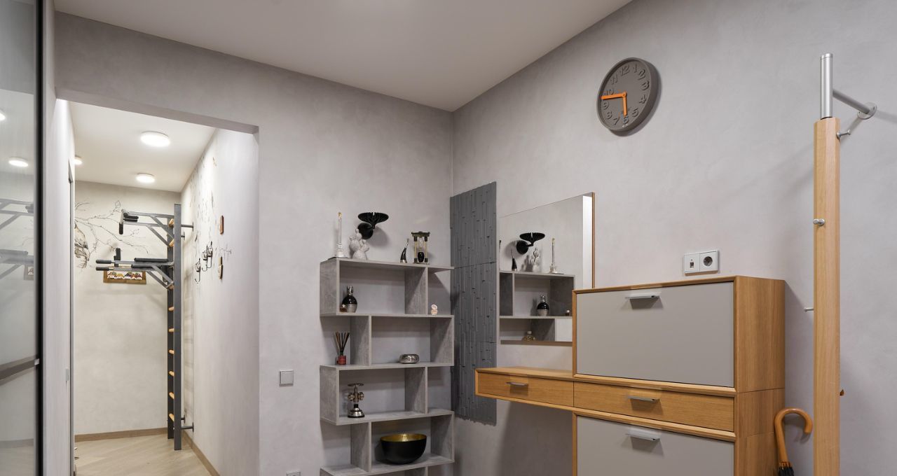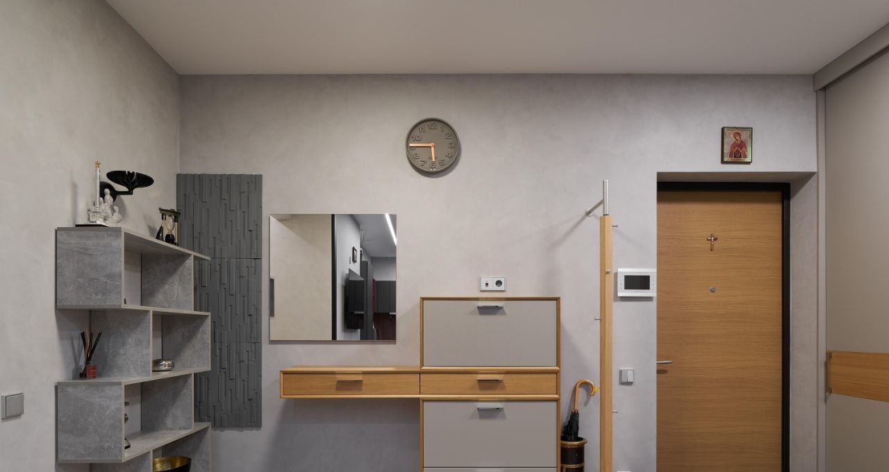 Продуманная планировка: приватная зона отделена от зоны для приёма гостей. Есть два санузла: гостевой и просторная ванная с душевой кабиной. Гардеробная, много мест для хранения, уютная отапливаемая лоджия.