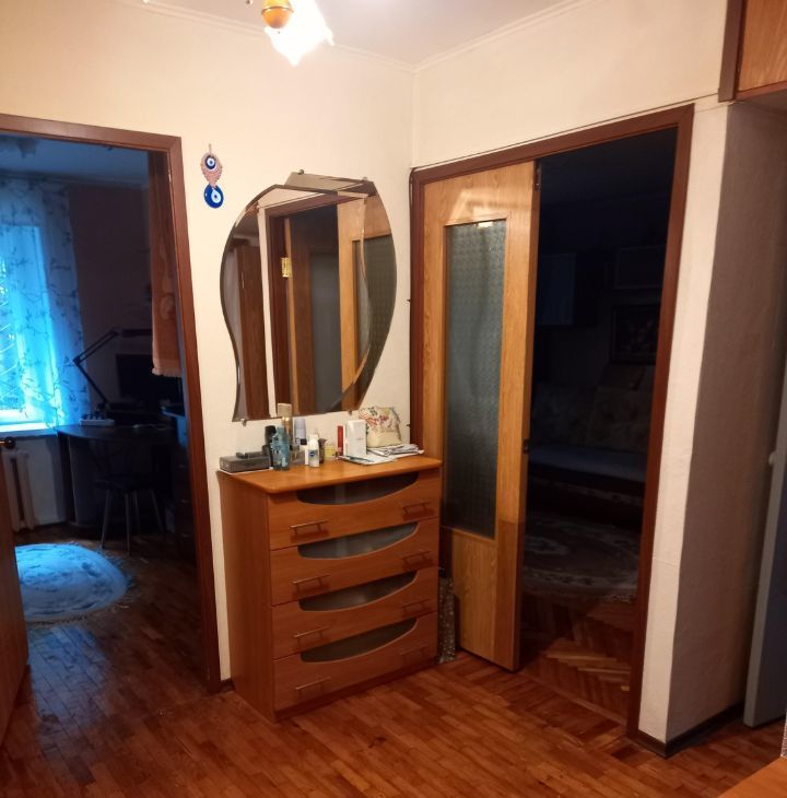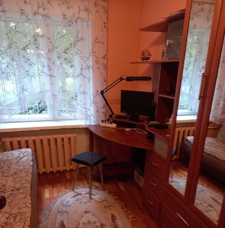 Дом сухой, теплый, пол -паркет, на окнах установлены стеклопакеты и решетки. Застекленная лоджия. Высокий первый этаж (бельетаж). На этаже 3 кв, металлическая входная дверь.
