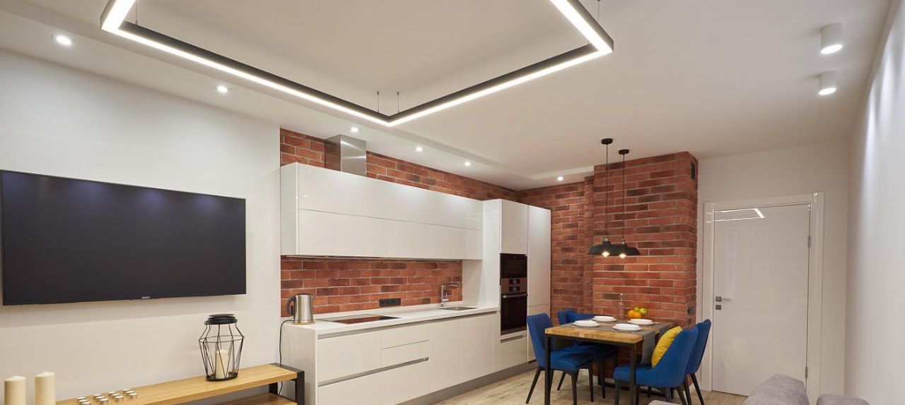 - Два больших телевизора Sony HD Smart TV, диагональ телевизора 49 дюймов в спальне и 55 дюймов в гостиной, высокоскоростной гигабитный интернет по всей квартире, Wi-Fi, домофон с видеонаблюдением, утюг, сушилка для белья, гладильная доска.