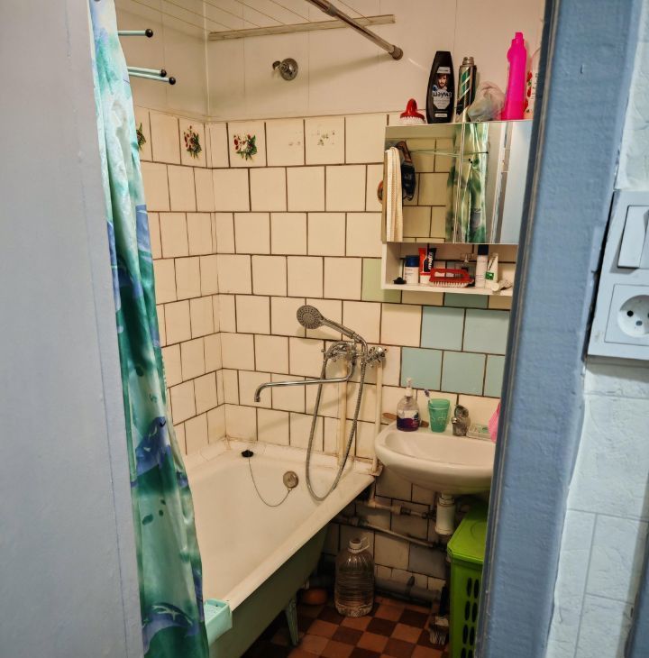 Из минусов: плитку в ванной не меняли, стиралка уже в возрасте (но стирает хорошо) .