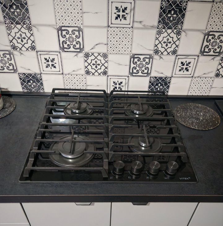 Из техники : варочная поверхность (газ, с газ контролем, современная, новая), холодильник, микроволновка, чайник, пылесос, телевизор, стиральная машина.