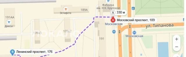 В пешей, всего 330 (!) м через двор от входа в метро Московская.