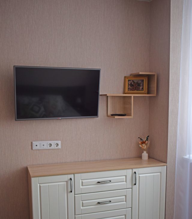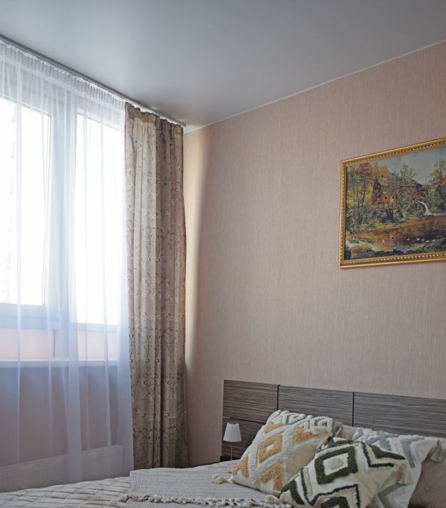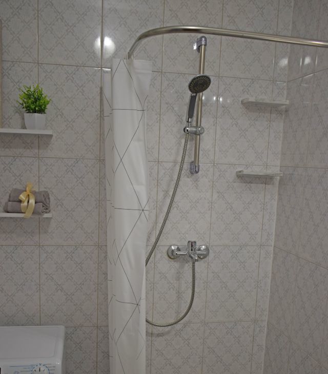 В квартире выполнен качественный евроремонт, а окна выходят во двор, поэтому это тихое и уютное место для жизни. Кухня площадью 9 кв. м оснащена всей необходимой мебелью и техникой, включая холодильник. В гостиной и спальне также есть вся необходимая мебель. Санузел раздельный, оборудован современной душевой кабиной. Для удобства проживания предусмотрены телевизор и стиральная машина, а также подключен интернет.