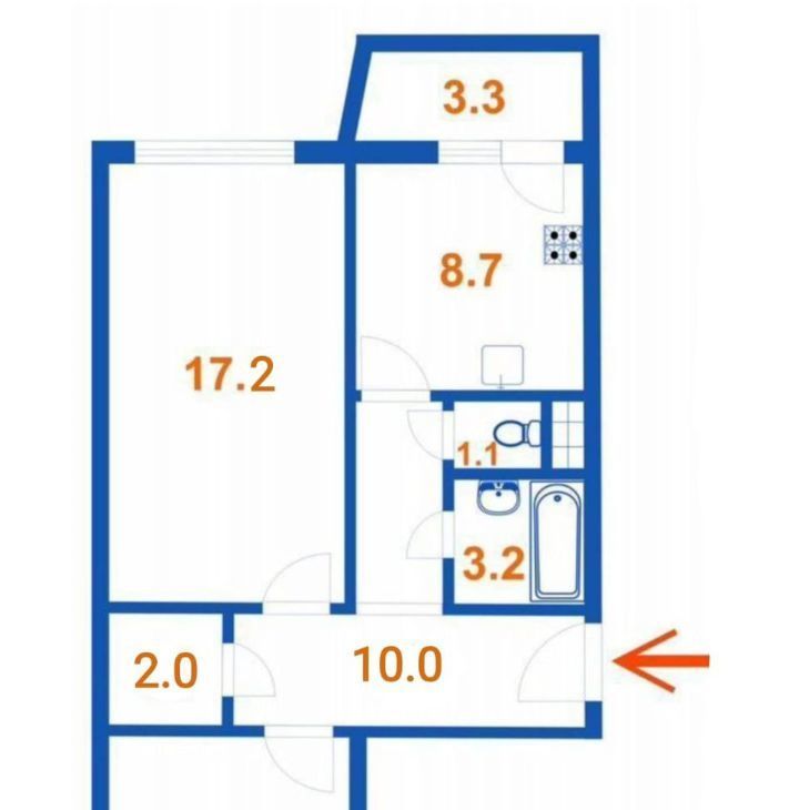 2-комнатная квартира: Санкт-Петербург, проспект Раевского, 3 (44.5 м²)