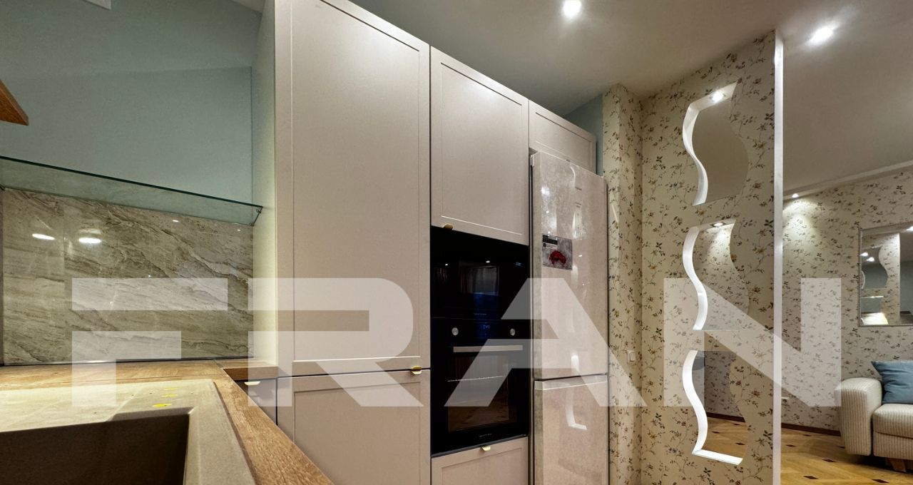 В квартире две лоджии и отличная система хранения. В квартире установлены тёплые полы, а кухня оснащена современной техникой, включая духовой шкаф, холодильник , посудомоечная машина и многое другое.