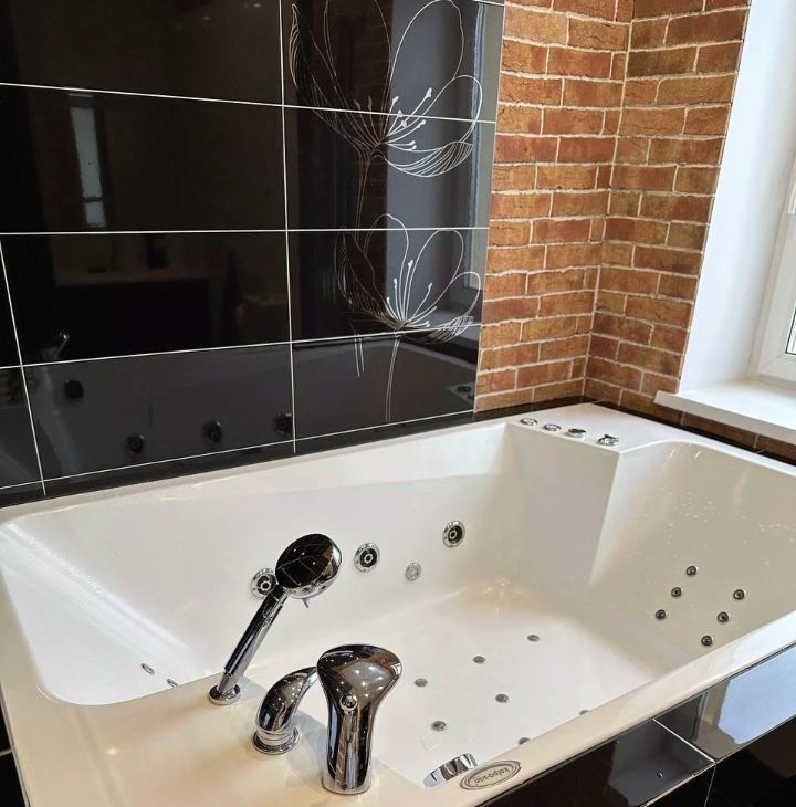 Европейское качество: Для отделки использована элитная итальянская плитка и керамогранит. Вся встроенная техника — немецкого производства