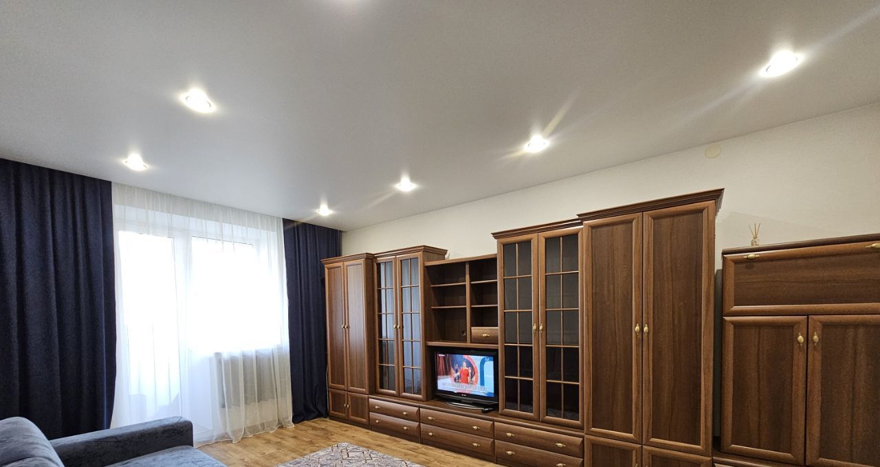 В гостиной угловой диван, кресло-кровать, ЖК телевизор.