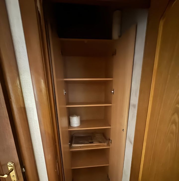 В одной комнате - стенка, столы, в другой комнате - шкаф для одежды.