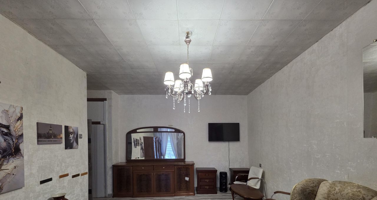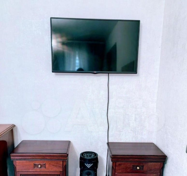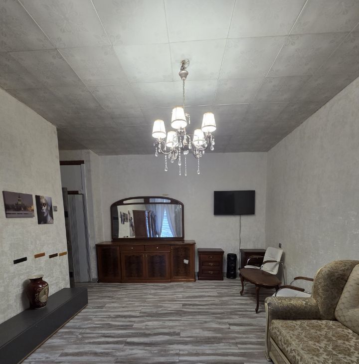 В просторной гостиной: большой 2-х спальный угловой диван, кресло, журнальный столик, плазменный телевизор. Интернет подключен.