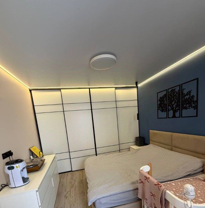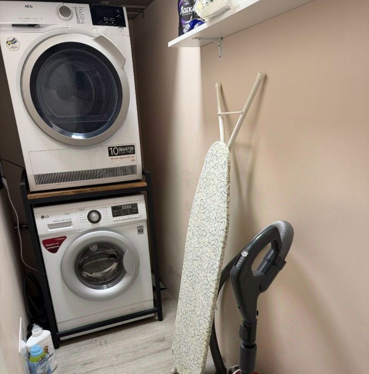 В спальне вместительный шкаф-купе и удобная кровать. Для хранения вещей предусмотрены шкафы. В квартире также есть стиральная машина и сушилка для белья.