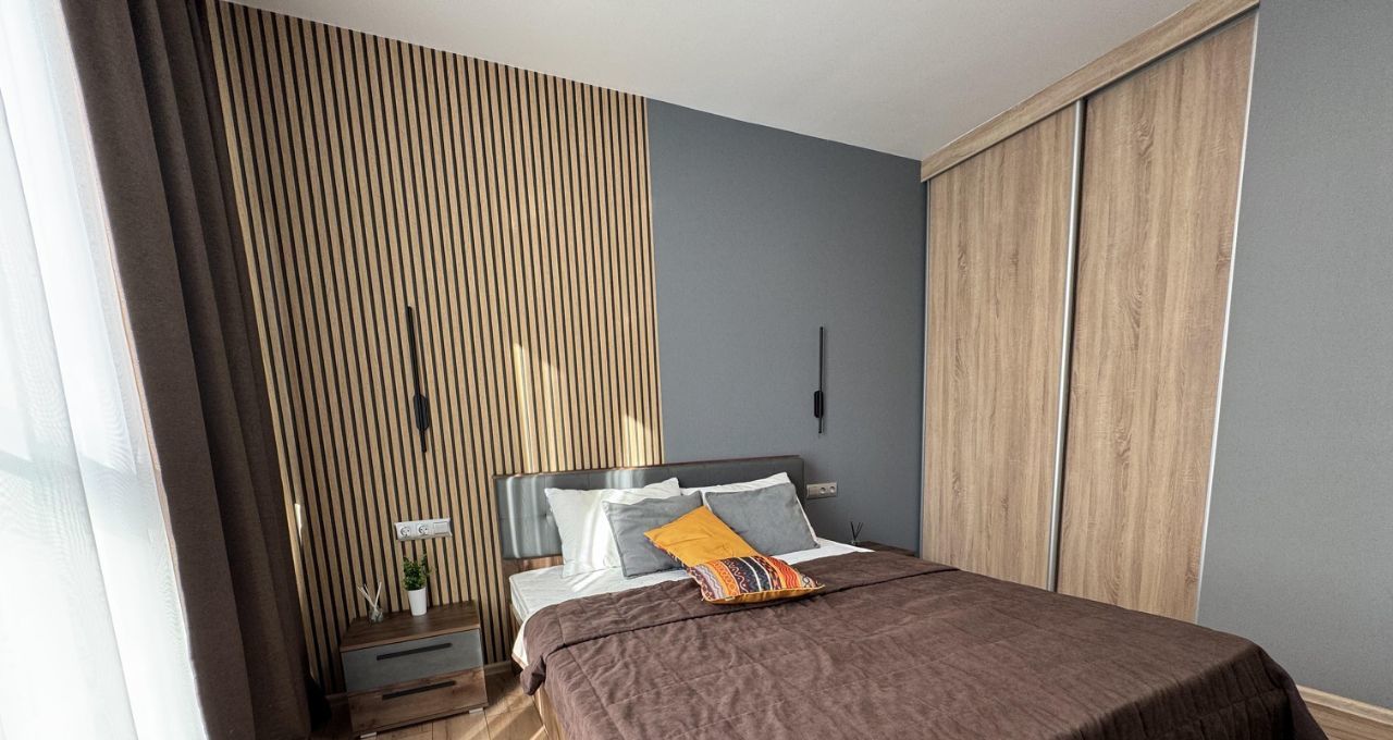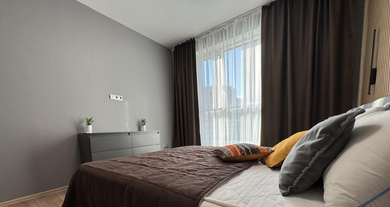 Квартира светлая, просторная, комнаты изолированные, просторная прихожая, два сан узла, (один совмещенный), кухня-гостиная 15 м . Есть вся необходимая мебель, бытовая техника ( плита, вытяжка, духовка, микроволновка, холодильник, посудомойка, телевизор ), все для вашего комфорта.