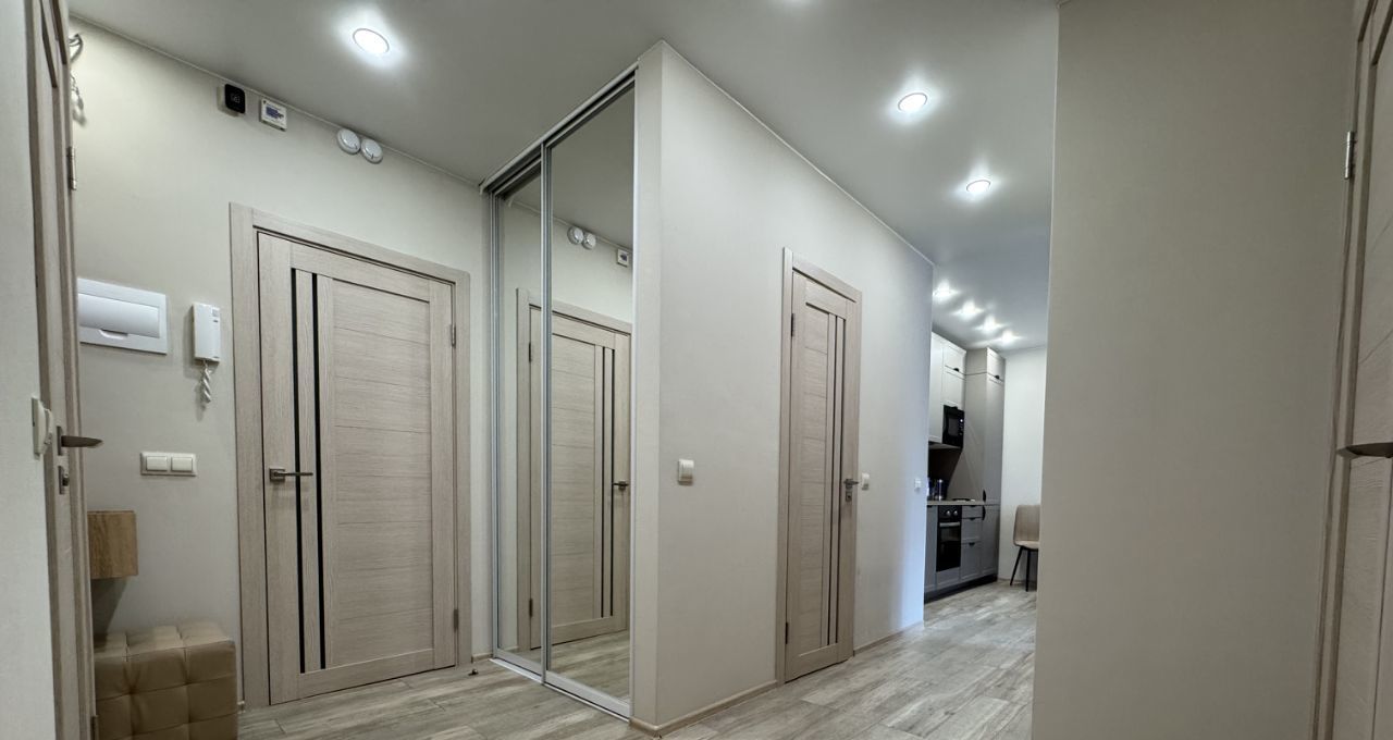 Удобная прихожая- холл 9 метров с зеркальной вместительной гардеробной .
