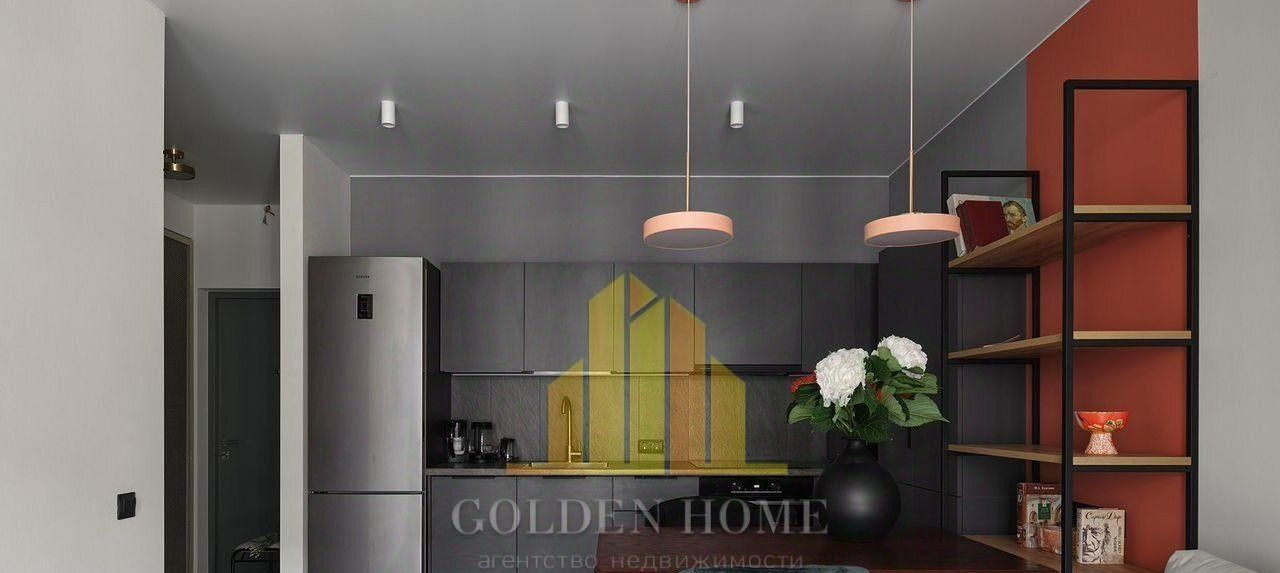 Кухня-гостиная с качественной техникой и стильным интерьером. Здесь приятно принимать гостей и проводить время с семьей.