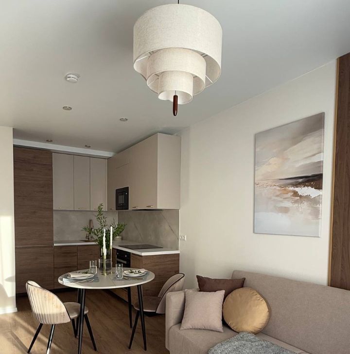 * Светлая и просторная кухня-гостиная с современной встроенной бытовой техникой и удобной качественной мебелью;