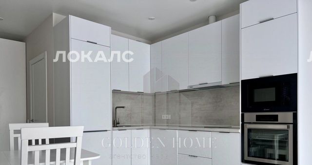 Кухня сo встpоеннoй тexникой (встроенный холодильник, индукционная варочная панель, духовой шкаф, микроволновая печь, вытяжка, посудомоечная машина).