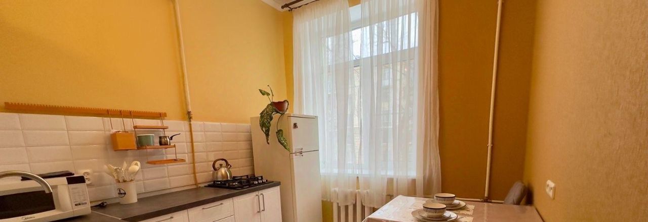Сдается уютная двухкомнатная квартира в кирпичном доме, построенном в 1958 году. Общая площадь 56 кв. м, с просторной кухней 10 кв. м. Квартира расположена на 2 этаже пятиэтажного дома. Высокие потолки 3.2 метра добавляют ощущение простора.