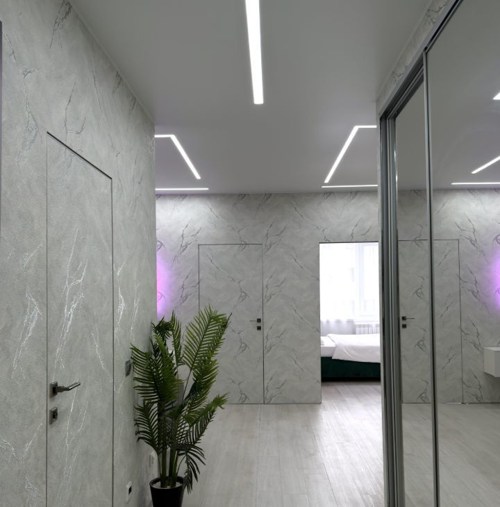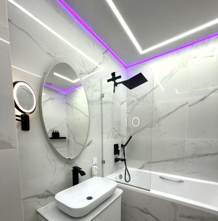 Система умный дом: видеодомофон, управление Алисой, светодиодная подсветка с возможностью менять цвет и яркость.