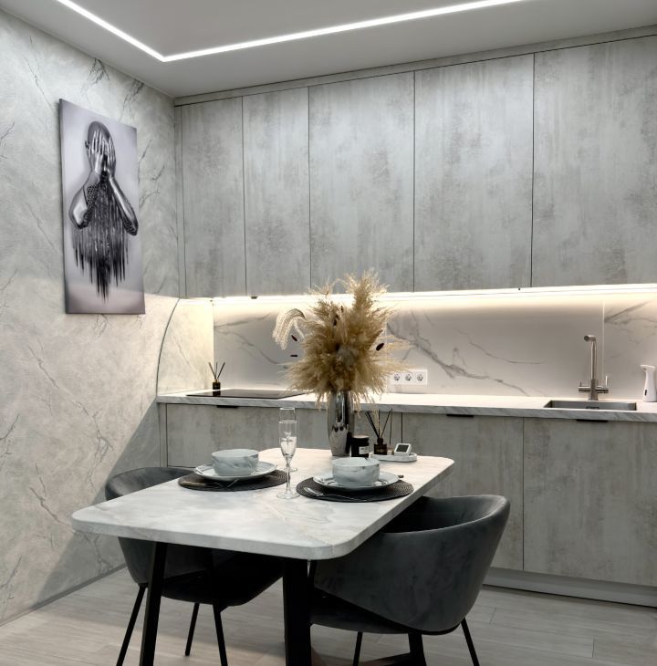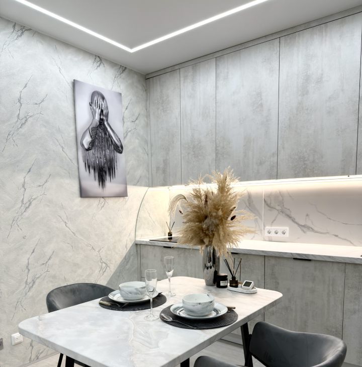 Просторная кухня-гостиная - отличное место для приема гостей или уютных вечеров.