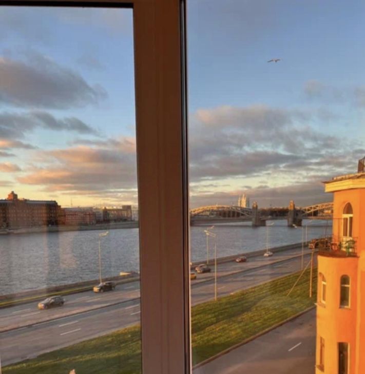 Эксклюзивный вид на Большеохтинский мост (один из самых красивых мостов Санкт-Петербурга), который не оставит равнодушным в Ваши романтические вечера!