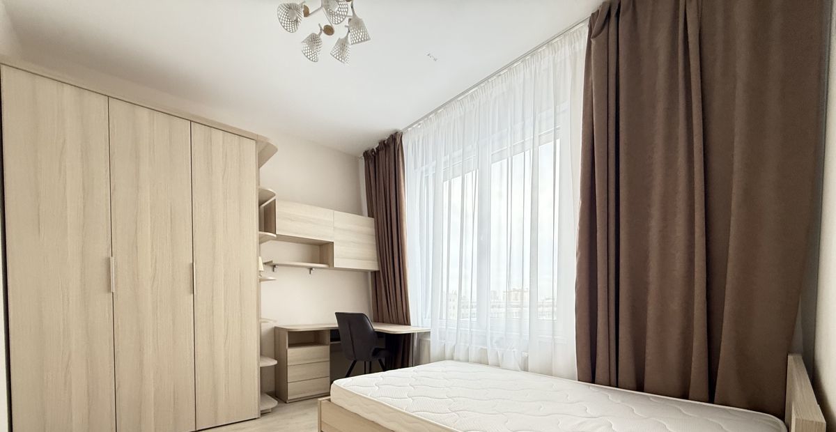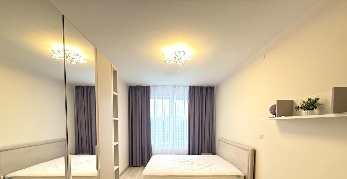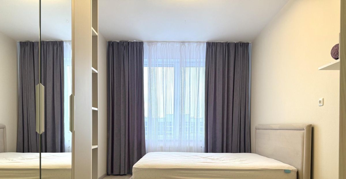В квартире все продумано до мелочей для комфортного проживания, двуспальная кровать с ортопедическим матрасом и вместительным шкафом в одной комнате, и односпальная кровать во второй комнате, где так же есть вместительный шкаф и оборудованное рабочее место.