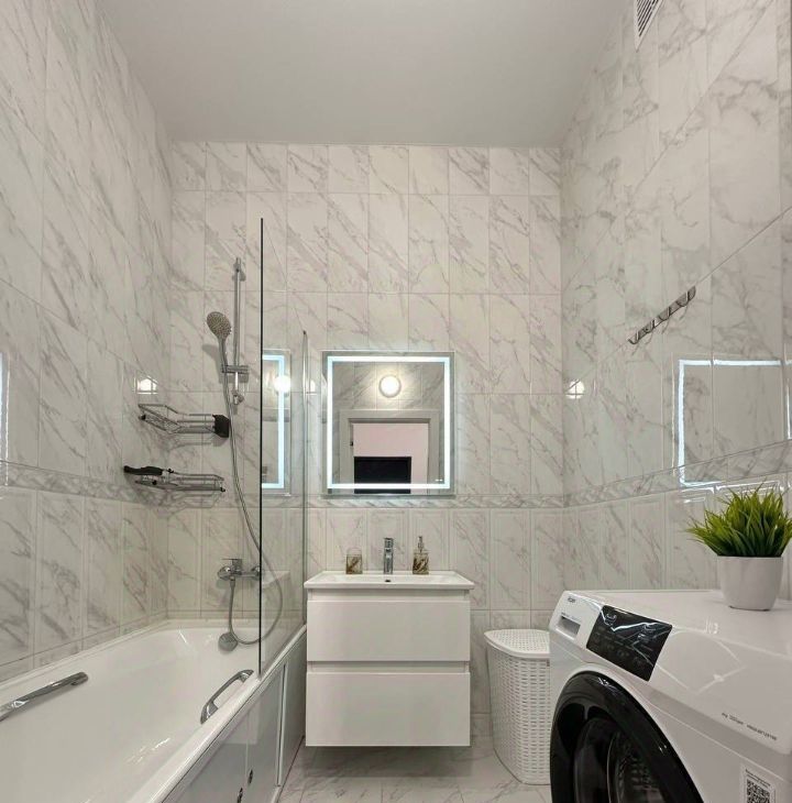 Вся необходимая техника: стиральная машинка, пылесос, варочная панель, духовой шкаф, микроволновка, холодильник, утюг, чайник, телевизор, посудомойка. Проведен интернет 400 мб/сек.
