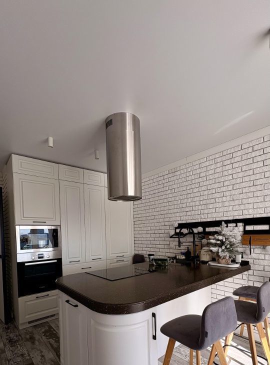 На кухне есть посудомоечная машина, измельчитель отходов, кофемашина, варочная панель, духовой шкаф, СВЧ и вытяжка